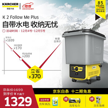 Karcher卡赫高压清洗机 洗车水枪家用洗车机 无线洗车机洗车泵 德国凯驰集团K2 Follow Me Plus活动到手价格1329元【现在要多少】 !