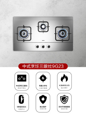 老板9G23三眼燃气灶外观做工质量好,大品牌,值得信赖,点火很方便,火焰也是蓝色的,质保三年,售后也很好,安装师傅也很专业!一切都很好!火力合适,点火速度很好,物美价廉。送货速度神速